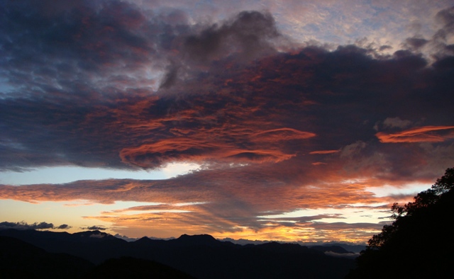 鑓温泉からの朝焼け、雲と光のおりなす空のキャンバスは幻想的でした